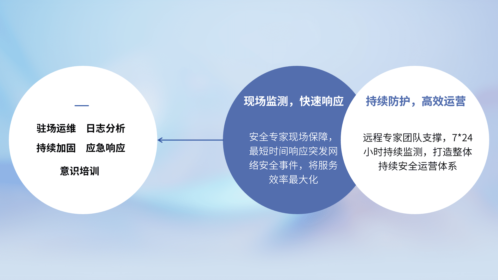 7X24小时持续监测安全事件,保持安全策略有效性,降低资产脆弱性风险,,,,精准拦截黑客攻击,,减少被黑客利用的机会,,,,第一时间遏制,,,降低损失。。。