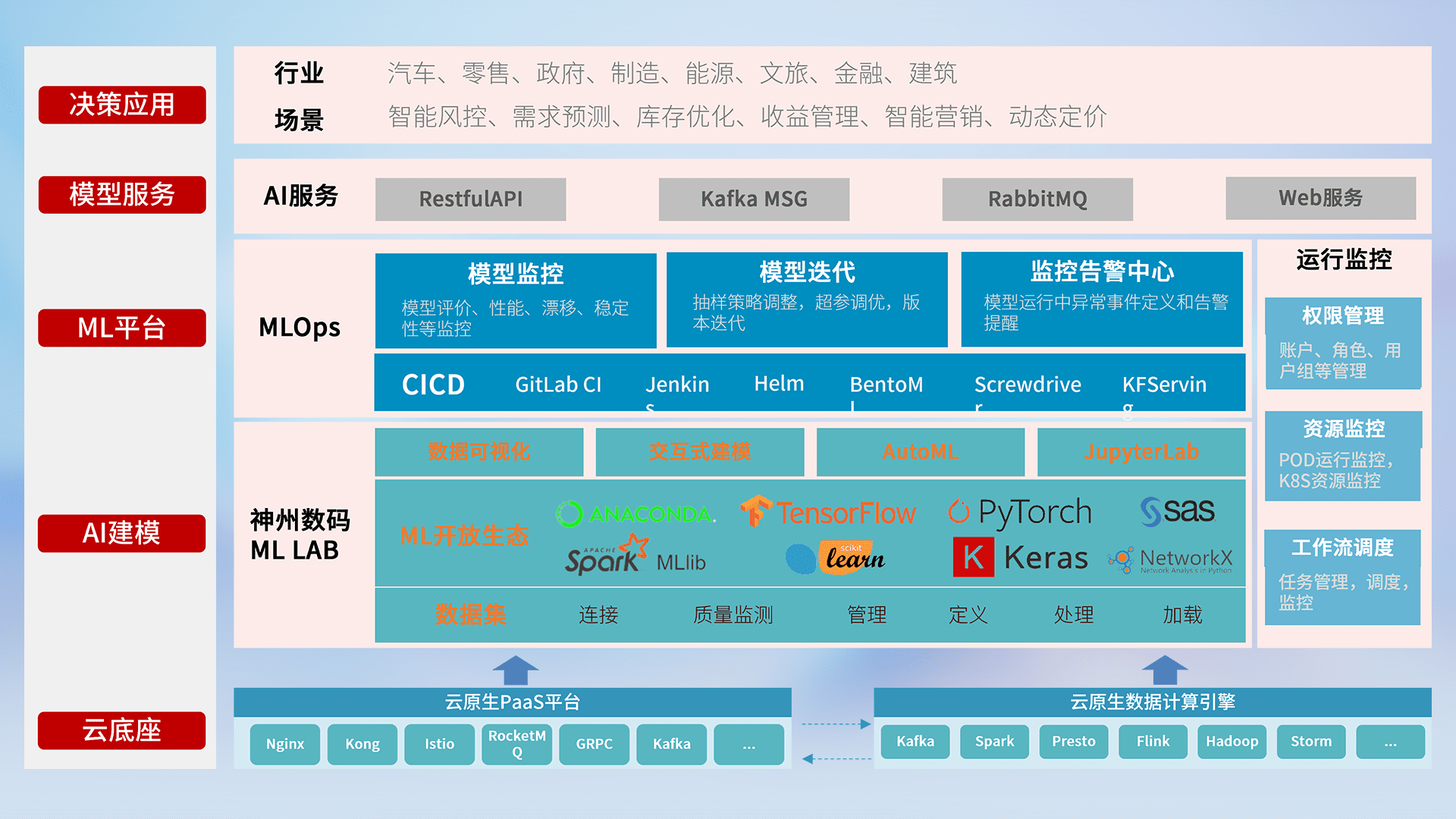 数据+模型双引擎驱动,,,面向智能服务场景,,快速灵活利用AI技术,,,,支持业务决策,,,,助力企业智能化转型破局。。